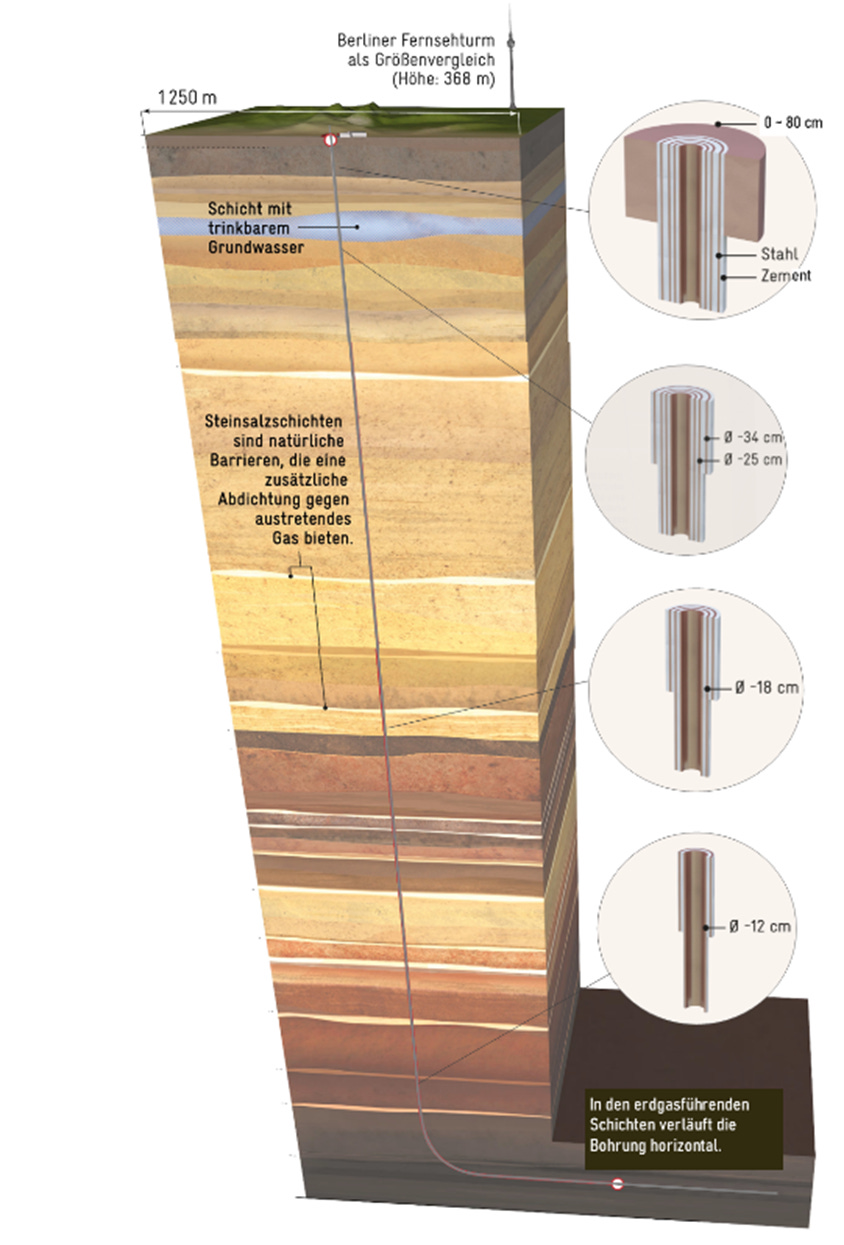 In der Sache grundlos, denn die Brunnen der Unternehmen liegen weit ab von potenziellen Schiefergas- bzw. Flözgaslagerstätten, zumal eine Beeinträchtigung des nutzbaren Grundwassers ohnehin ausgeschlossen werden kann. Missweisende Darstellungen in Medien und Öffentlichkeit zeigen hier Wirkung.