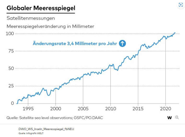 Die global gemittelte Änderungsrate betrage 0,26 Meter pro Jahr, also ein Plus von rund einem Viertelmeter; außer in Nordamerika würden die Küsten überall wachsen. Wohlstand erleichtert Schutz gegen den Klimawandel: Die Menschheit konnte den schwellenden Fluten trotzen, weil sie sich besser wappnete.