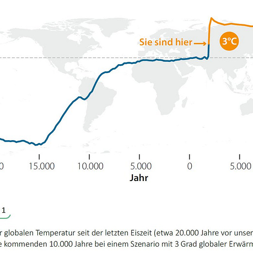 In den vergangenen 2000 Jahre schwankte das Klima um 1 bis 2 Grad. Das verdeutlicht, wie besonders eine menschengemachte Erwärmung von 2 bis 3 Grad wäre, auf die wir aktuellen Szenarien zufolge zulaufen (gut 1 Grad ist schon erreicht).